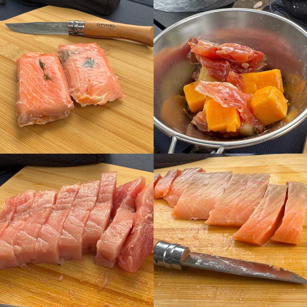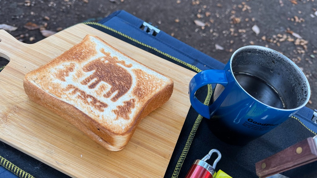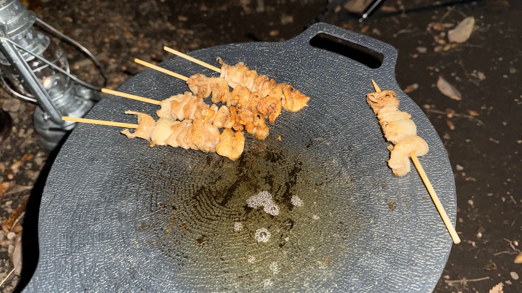 焚き火で焼きたかったのですが、暗くて焼け具合が分からないので、マルチグリドルで焼くことにしました。