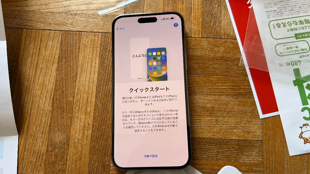 iPhone13proMaxをiPhone14ProMaxの近くに置くと自動でデータ移行してくれます。