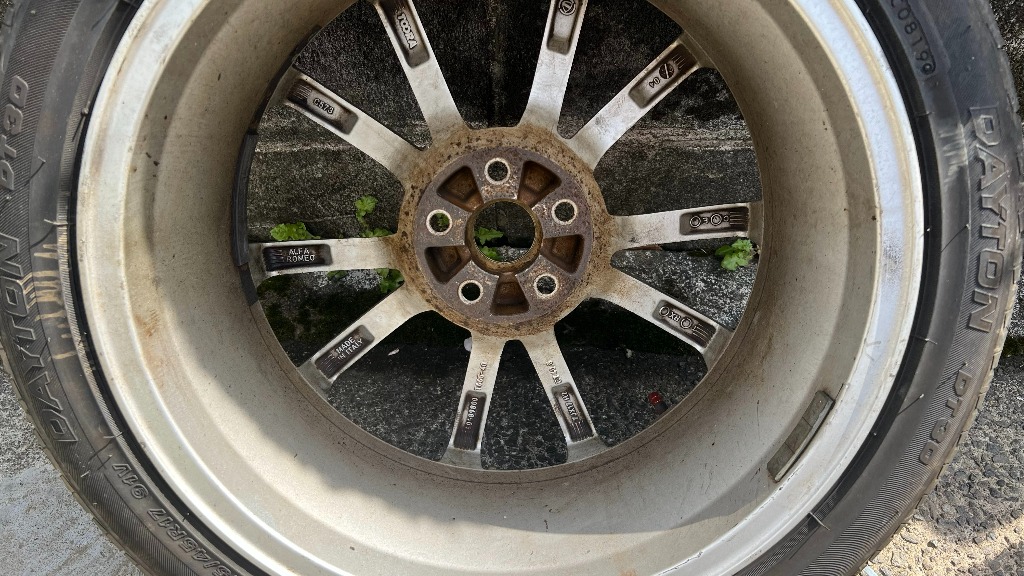 アルファロメオGTネロのハブとアルミホイールのサビ落としをしました。