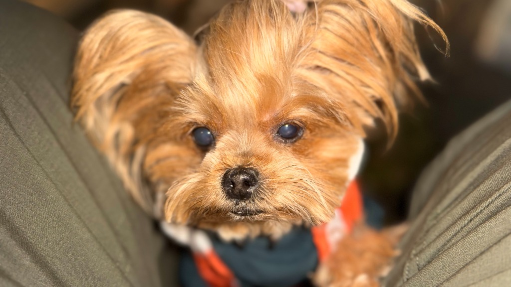 可愛いですよね。膝の上で寝てしまった取締役で車監視役のヨークシャーテリアのららです。