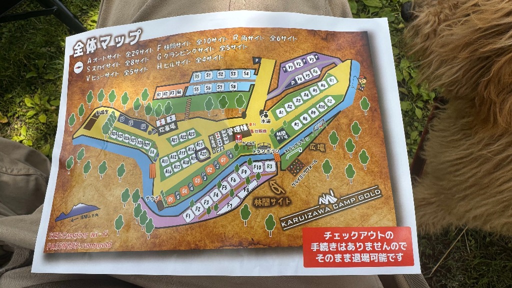管理人さんが、空いているので区画に入っていいと言うことで、受付を済ませて指定された区画サイトへ行きました。