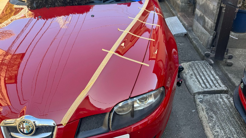 アルファロメオ159にキャンプ道具を積んであるので、暖気してエンジンが温まったら、アルファロメオジュリエッタの後ろに持っていきます。