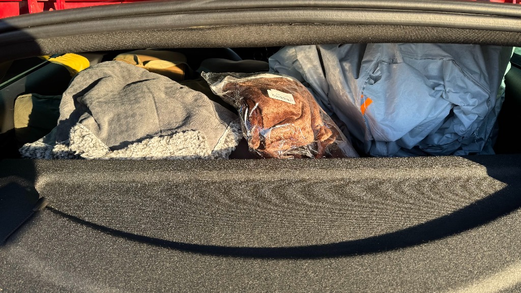 夏、冬も関係なく一緒に積んであるので、荷物は多いですがアルファロメオジュリエッタなら全部積めそうですね。
