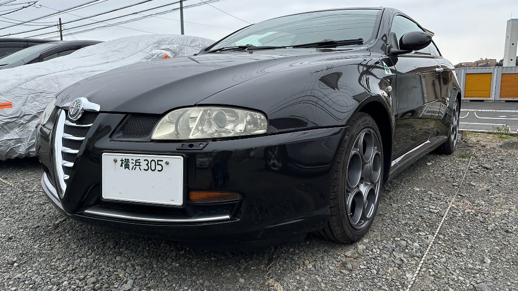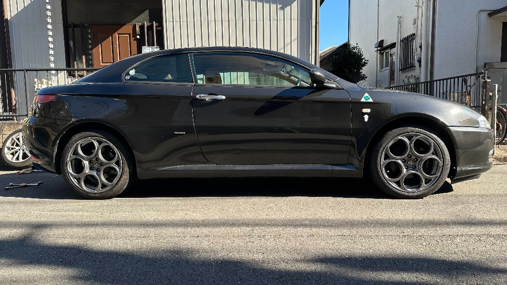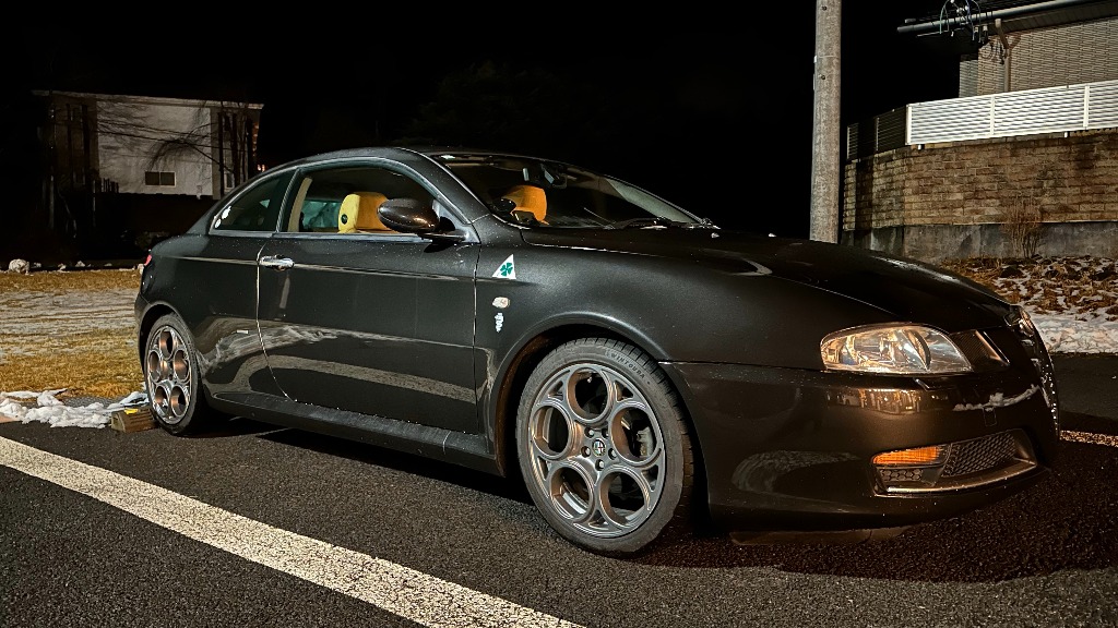 アルファロメオGTネロは、スタッドレスタイヤに履き替え準備は整っております。