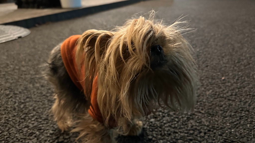 取締役で車監視役のヨークシャーテリアのららと朝の散歩に行ってきました。
