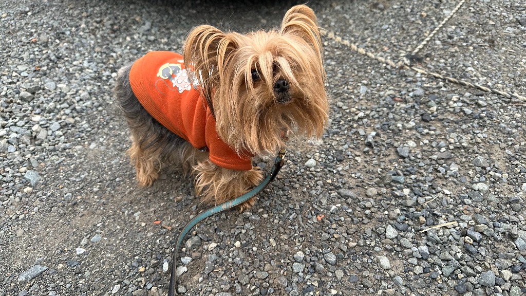 散歩再開です。お腹の調子が悪い、取締役で車監視役のヨークシャーテリアのららです。