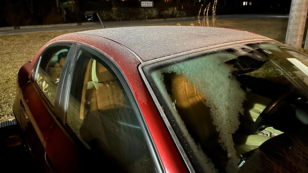 心配していた雪と路面凍結はなかったですね。部屋で持ってきたコーヒーセットで挽きたてコーヒーです。取締役で車監視役のヨークシャーテリアのららもくつろいでおります。