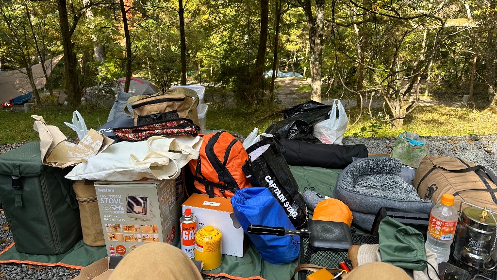後は、車から下ろした荷物とテントから出した荷物を車に上手く積んでおしまいです。