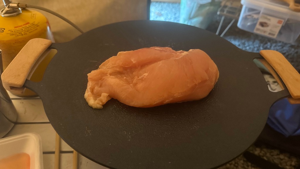 夕方から朝まで爆睡していたので、夜食べる予定だった鶏胸肉を、朝食べました。